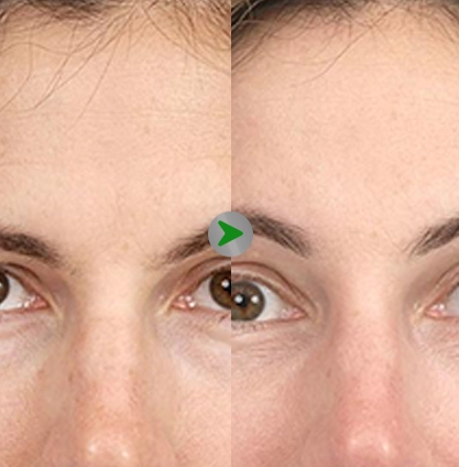 - Dahi yang lebih kencang dan halus dari kerutan.